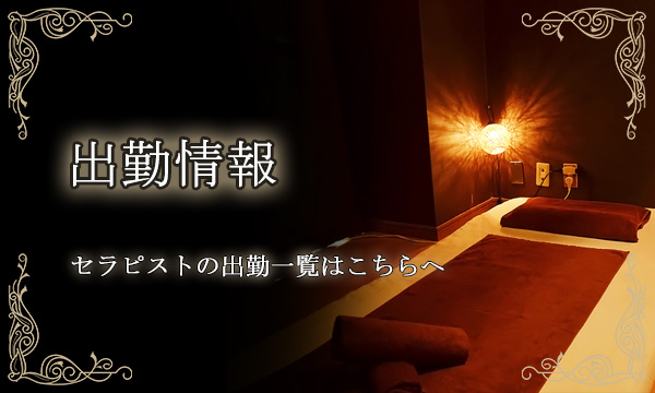 当店では、アロマオイルの効能と当店自慢のセラピストによるリンパマッサージの相乗効果による、癒しのひとときをお客様お一人お一人にお届けしております、自然で心やすらぐ優美な香りを、施術中はもちろんご帰宅お休みになってから翌日朝目覚めでまで楽しんで頂けます、どうぞゆっくりご堪能ください。